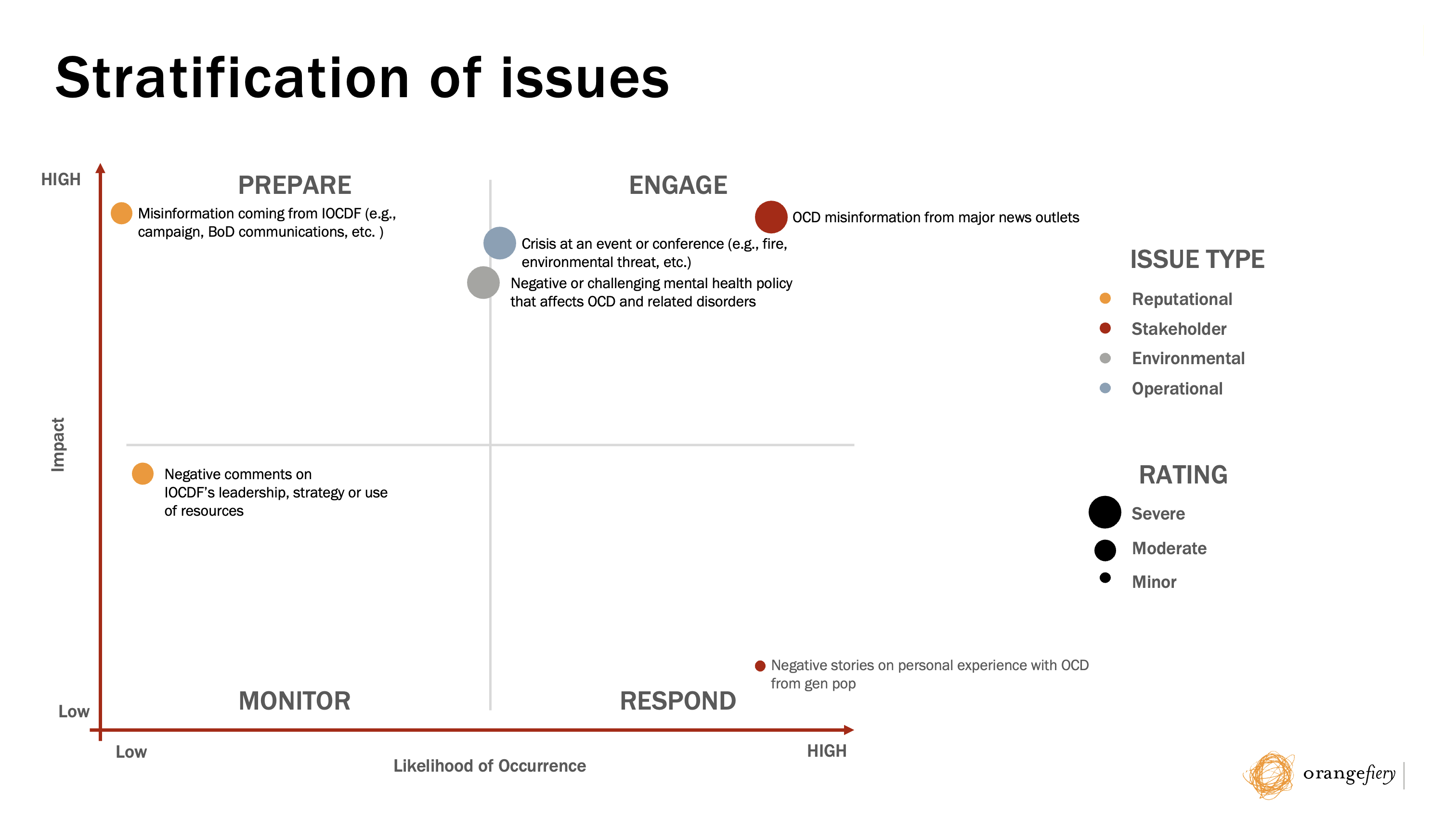 The International OCD Foundation (IOCDF) wanted a clear plan for how to engage with external audiences if a crisis or issue related to obsessive-compulsive disorder (OCD) should arise. The IOCDF also needed a meaningful way to categorize, assess and prepare for potential crises.